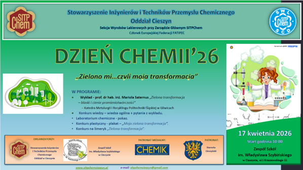 Stowarzyszenie Inżynierów i Techników Przemysłu Chemicznego SITPChem oddział w Cieszynie, realizując misję stowarzyszenia, popularyzuje chemię w szerokim zakresie jej znaczenia w przemyśle i gospodarce w powiązaniu z ochroną środowiska.