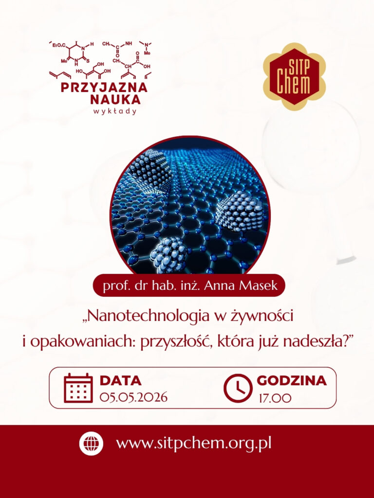 Zapraszamy na wykład pt.: „Nanotechnologia w żywności i opakowaniach: przyszłość, która już nadeszła”, który wygłosi prof. dr hab. inż. Anna Masek reprezentująca Politechnikę Łódzką, Wydział Chemiczny, Instytut Technologii Polimerów i Barwników