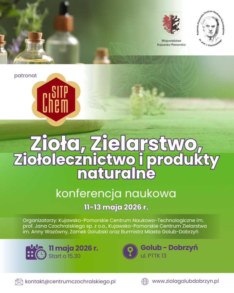 Z przyjemnością informujemy, że Stowarzyszenie Inżynierów i Techników Przemysłu Chemicznego (SITPChem) objęło patronatem nadchodzącą konferencję naukową poświęconą naturalnym substancjom biologicznie aktywnym. Wydarzenie odbędzie się w dniach 11–13 maja 2026 r.